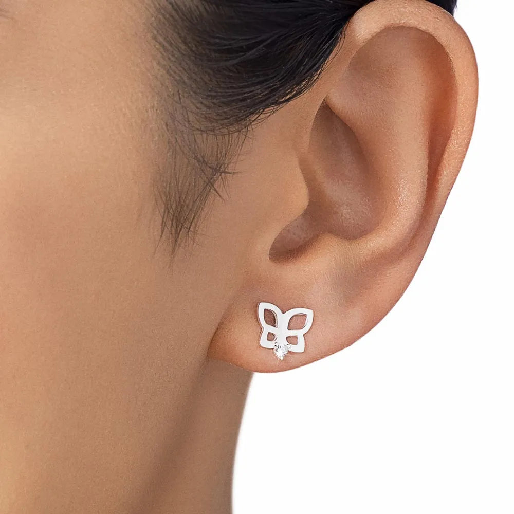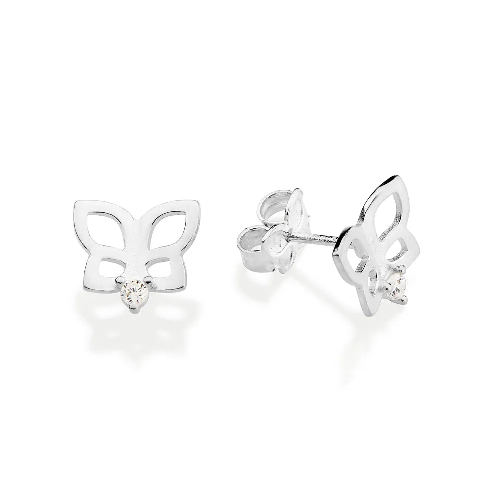 BRINCO BORBOLETA DE PRATA MACIÇA 925 COM ZIRCÔNIAS