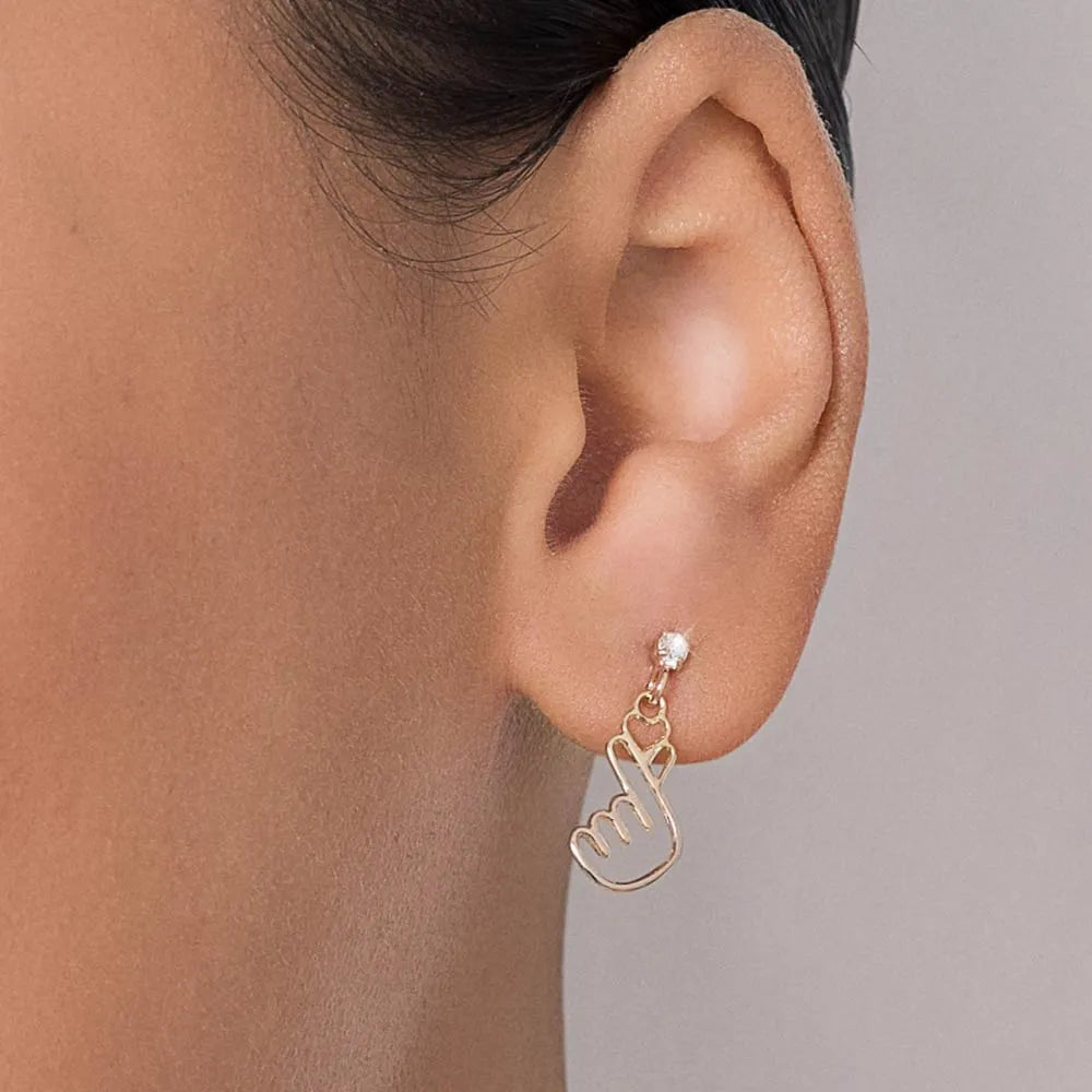Brinco coração coreano finger heart com 2 zircônias de 2,50 mm (par). - tamanho único